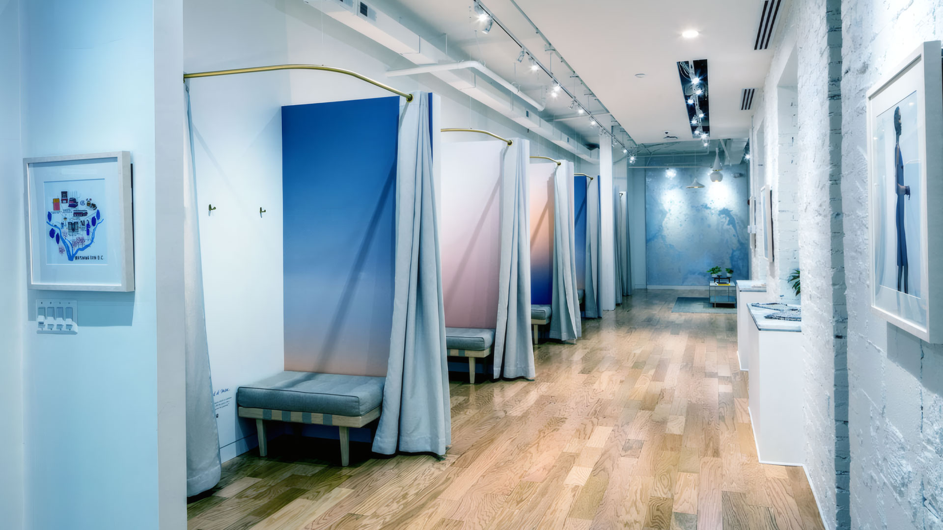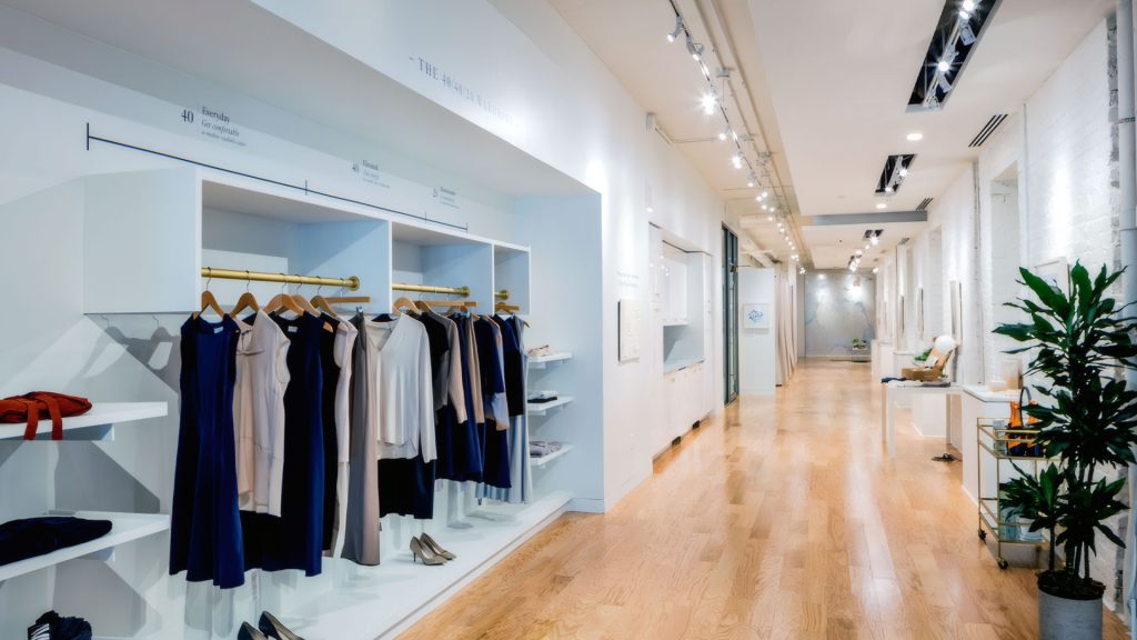MM.LaFleur was established in 2013 as a women’s workwear company. The Washington, DC showroom is the brand’s first outside of New York City. EMA designed the space to showcase clothing and accessories in a setting that encourages interaction between customers and stylists. Materials played an important role in the design and were specifically selected to create a space that feels residential yet durable. LED lighting was utilized for both beauty and energy efficiency, carefully calibrated to display the true colors and textures of the clothing line’s fabrics and materials.